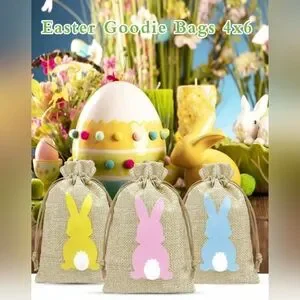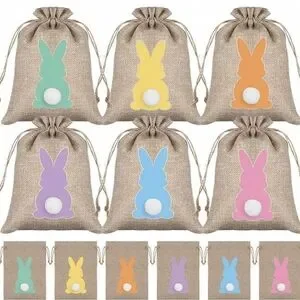 Add charm to your party, thank you bags or decorations with these colorful bunny burlap bags. Perfect for Easter or spring celebrations, these bags come in vibrant shades of green, yellow, orange, purple, blue, and pink. Delight everyone with these adorable and reusable burlap bags.