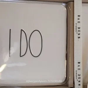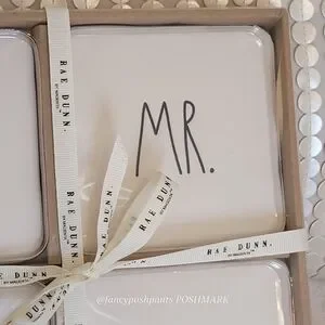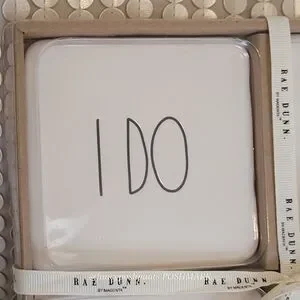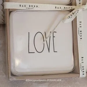 new!RAE DUNN white wedding engagement anniversary coaster 4 piece set sealed and with original branded logo ribbon