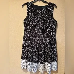 Charming polka dot dress in classic black and white. Perfect for summer and graduation.