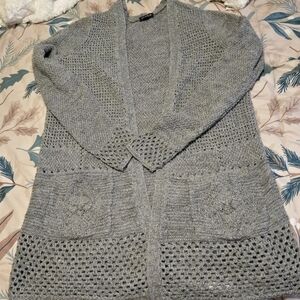Gray Open-Front Knit Sweater Size 1 =1x