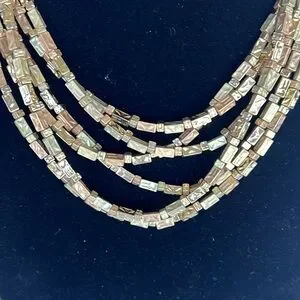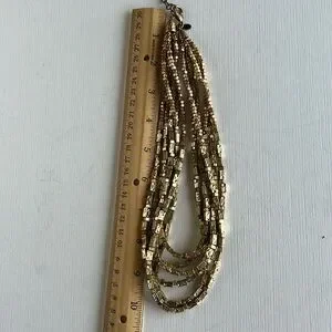 This elegant gold multi-strand necklace adds a touch of sophistication to any outfit. Perfect for any occasion. See pictures for measurements. Excellent used condition. Smoke and pet free house.