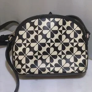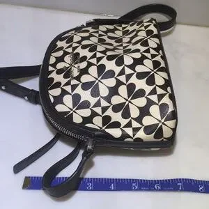 Stylish and chic, this Kate Spade bag features a striking black and white pattern. Perfect for any occasion, it adds a touch of elegance to your outfit. Adjustable strap. 2 inside pockets please small zipper pocket. Good used condition.