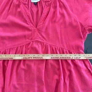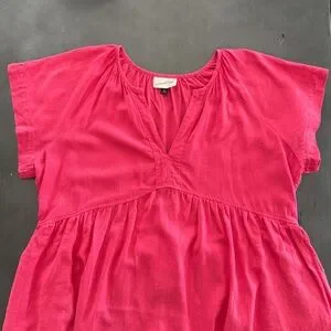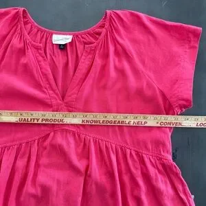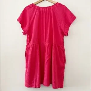 Universal Thread Pink Linen Flowy Short Sleeve A-Line Short Dress V-Neck - Side Pockets - Pleated Flowy Skirt - Flowy Wide Short Sleeve Top Shirt Dress