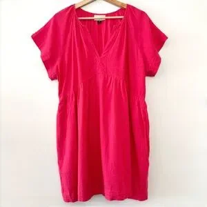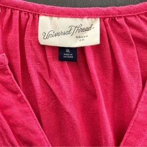 Universal Thread Pink Linen Flowy Short Sleeve A-Line Short Dress V-Neck Pocket