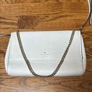 Elevate your style with this elegant Kate Spade shoulder bag. Crafted in a chic white leather, it features a sophisticated chain strap for a touch of glamour. Perfect for any occasion.