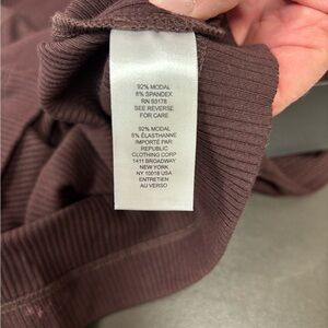 Elevate your wardrobe with this Moda ribbed long sleeve top. The rich brown color adds a touch of elegance to any outfit. Perfect for both casual and formal occasions.