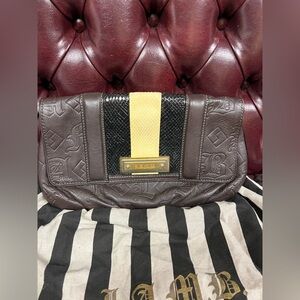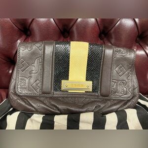 L.A.M.B. Dorset Chocolate Brown Leather Clutch with Faux Snakeskin