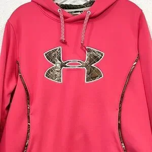 Under Armour Womens Pink and Green Long Sleeve Hoodie Size XL, Good Preowned Condition, Has a Small Spot on Left Sleeve (Please See Pictures)