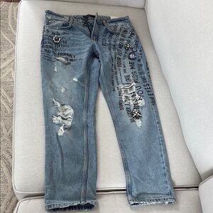 Brand new zara jeans size 4 , only one gem missing I included a picture of the missing gem but it’s hardly noticeable.
