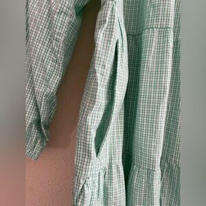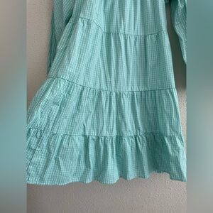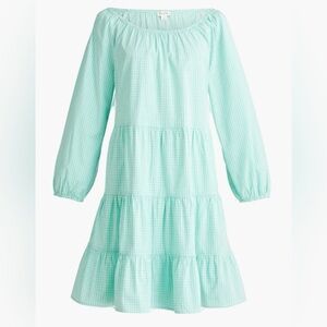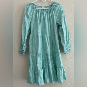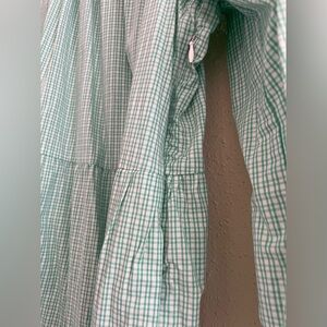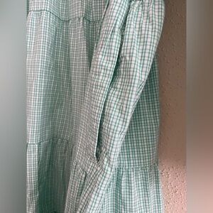 J Crew Factory Women’s Medium Green Gingham Cotton Blend Spring Tiered Dress