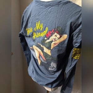 not pre owned loved this shirt! good shape graphic looks good pin up girl and bomb pucker up
