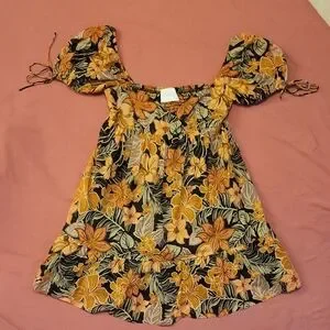 Dee Dee Floral Puff Sleeve Dress, Size Large