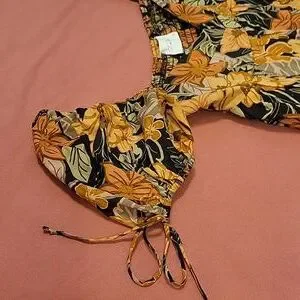 Embrace elegance with this floral puff sleeve top. Featuring a vibrant mix of orange and black, this piece is perfect for any occasion.