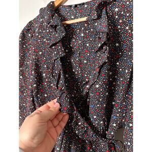 * Madewell Womens Silk Ruffle-Hem Wrap Top in Starry Night Size XS