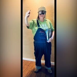 Used once for costume party. (I also list a Church Lady costume hat, gloves, etc.) See Amazon ad for what I paid. See pictures of my husband and me dressed as my parents! My father was a WW2 fighter pilot, and later a farmer and a crop duster. My mother was a reluctant farmer’s wife, but mostly a real life Church Lady! (Both deceased now)