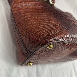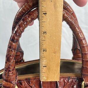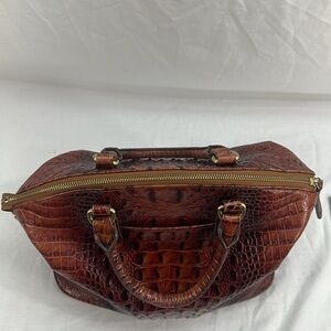 Up for sale is this pre-owned Brahmin Large Duxbury Croc Embossed Leather Satchel Bag With adjustable Shoulder strap