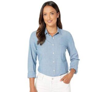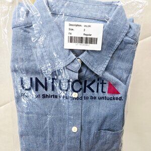 NWT UNTUCKit VALORI 100% COTTON DENIM CHAMBRAY BUTTON FRONT LONG SLEEVE SHIRT
