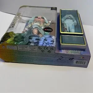 Stylish Rainbow High doll with long turquoise hair. Comes with a chic outfit and accessories.
