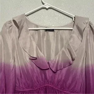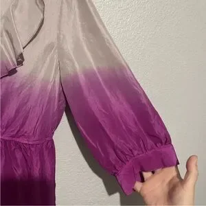 LIPSY OMBRE 100% SILK SATIN BABY DOLL MINI DRESS RARE PARTY CASUAL. This dress is in great condition with no flaws. The colors are so pretty and with a ruffled collar v-neck.