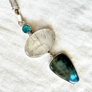 925 GORGEOUS! Flash Labradorite + Fine Tourmaline Tourmalated Quartz Necklace