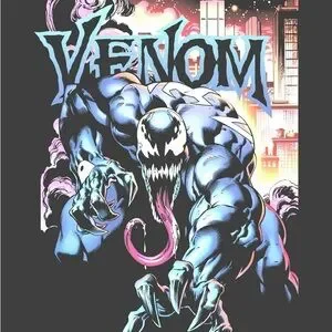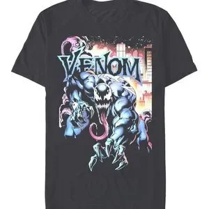 Venom Marvel, Men's & Big Men's Graphic Crew Neck T-Shirt, City Aflame, Sizes L