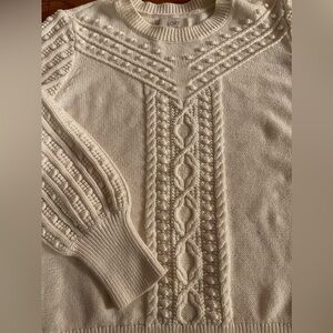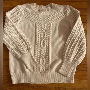 LOFT | Cream Cable Knit Popcorn Long Sleeved Sweater Puff Sleeve | L