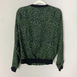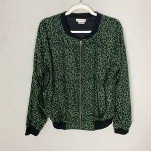 Beachlunchlounge Leopard Dasha Full Zip Bomber Jacket Green Womens M