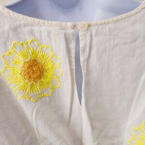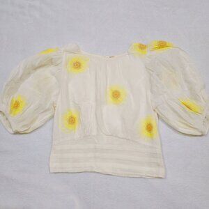 Free People My Girl Sunflower White Cotton Blouse Puff Sleeves & Back Button S