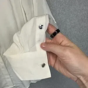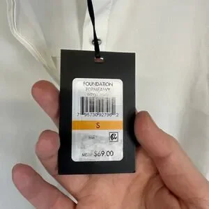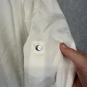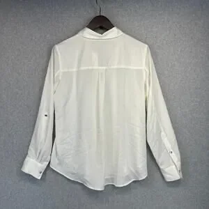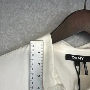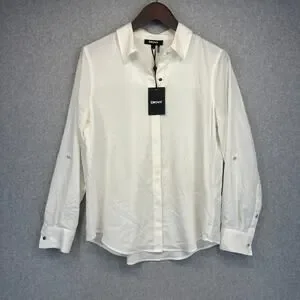 DKNY Foundation Shirt Womens Small Ivory 100% Polyester Button Down Long Sleeve