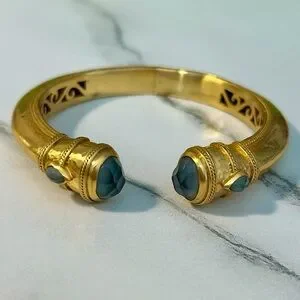 NWOT JULIE VOS 24K Gold Plated Charcoal Blue Bangle Hinge Bracelet