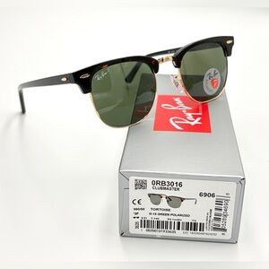 Ray-Ban Polarized Clubmaster Sunglasses Classic Hipster 990/58 Tortoise 51mm