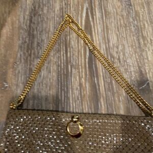 964) Vintage Metal Taupe Purse EUC Chain Straps