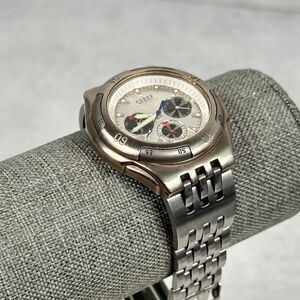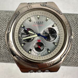 Guess Watch Womens 38mm Round Waterpro Silver Tone Day Date 6.5" New Battery
