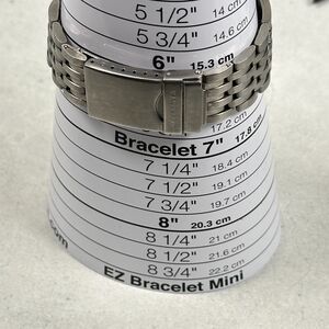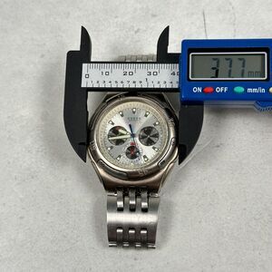Light scuffs/wear on the crystal, the band and case are very slightly different shades of silver tone. Watch is working and has a brand new battery. Please see all photos for detailed condition and measurements.