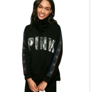 PINK VS Cowlneck Sweatshirt w/ Sequin Logo Glitter Rainbow🌈 Logo Tapestry