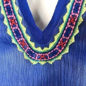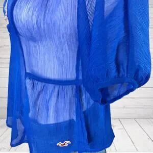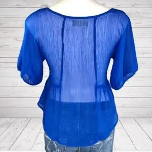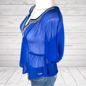 Sheer Embroidered Top Womens Size XS Blue Boho Festival Crinkle by Hollister