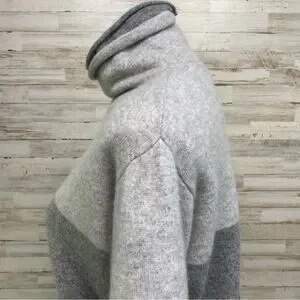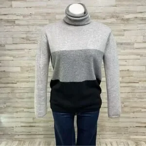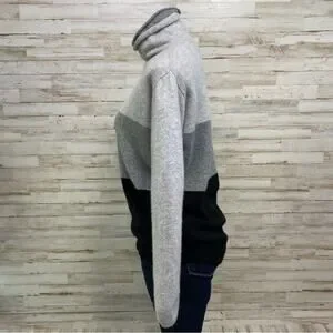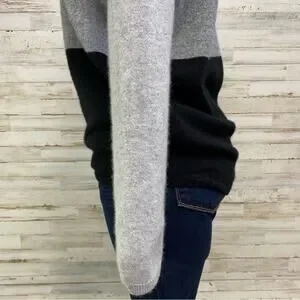 Magaschoni Cashmere Sweater Mock Neck Womens Size M Black Gray Colorblock