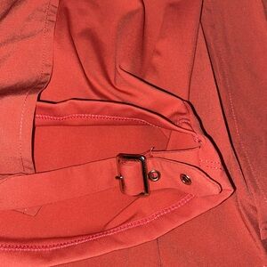 Vibrant orange skater skirt. Pleated design. Stylish and comfortable.