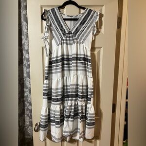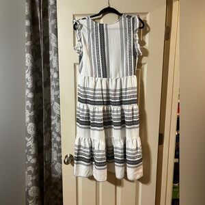 Step out in style with this flowy black and white striped dress. Perfect for any occasion, this dress offers a chic and timeless look. Cool and comfortable yet stylish and fun! Dress it up or down. Size small. NWOT