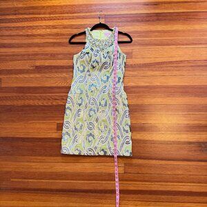 Lilly Pulitzer Chartreuse Fancy Occassion Mini Dress w/Beads and Sparkly Thread