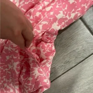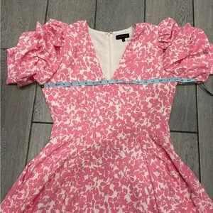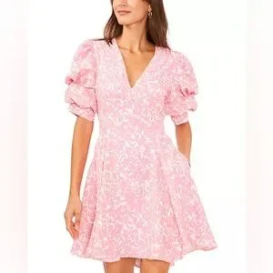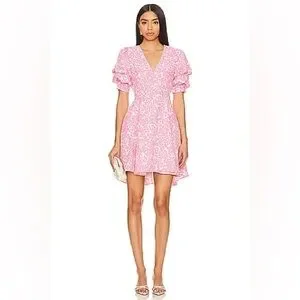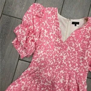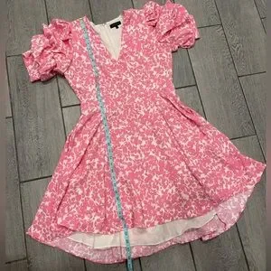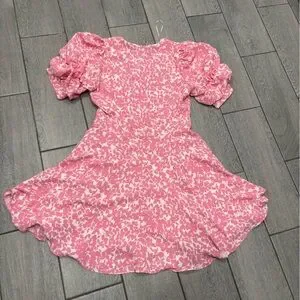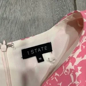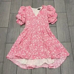 1. State Tiered Bubble Sleeve Dress in Pink & White with Pockets Size Medium