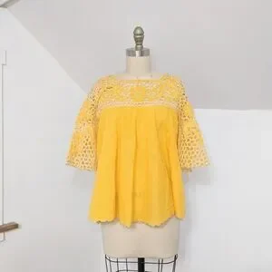 vtg 1960s era ultra boho hippie yellow eyelet embroidered bell sleeve blouse. Definitely something Stevie Nicks would have worn. So cool and a rare find.