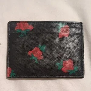 Kate Spade Black Card Holder with Red Floral Design