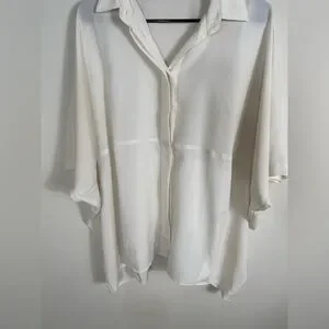 HATCH The Notched Blouse Cream One Size Deep VNeck Dolman Elbow Sleeve Maternity