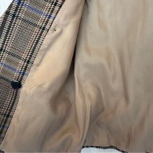 Elevate your style with this vintage plaid blazer. Featuring a classic brown and blue check pattern, this jacket adds a touch of sophistication to any outfit.