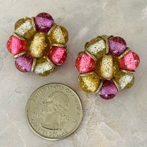 Vintage Sparkle Acrylic Cluster Clip On Earrings