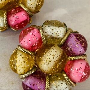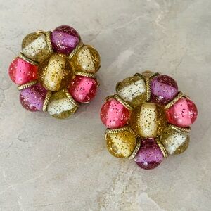 Elegant gold and pink beaded vintage clip on earrings with a touch of sparkle. Perfect for adding a pop of color to any outfit.