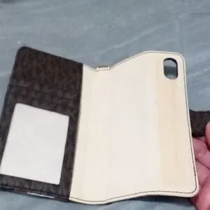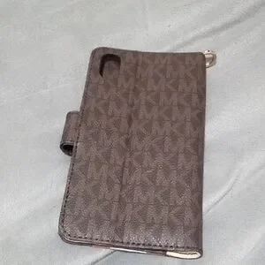 Stylish Michael Kors IPhone X/XS with a brown and orange design. Features the iconic MK logo.Missing Strap.