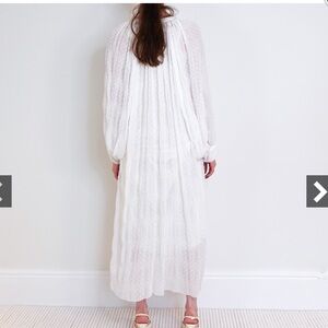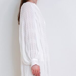 ZARA MIDI DOTTED MESH DRESS Large SEMI-SHEER BALLOON SLEEVES WHITE