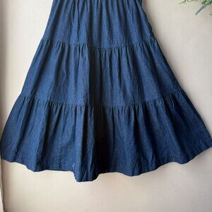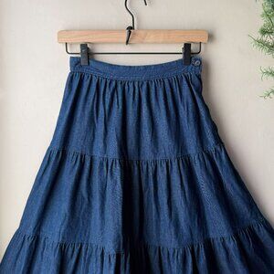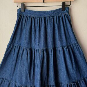 Vintage Collectibles Blue Denim Tiered Midi Circle Skirt